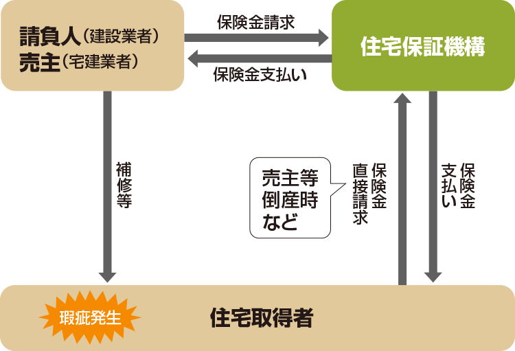※保険金は通常、建設業者や宅建業者に支払われますが、これら住宅事業者が倒産等をした場合は、住宅取得者に支払われます。
